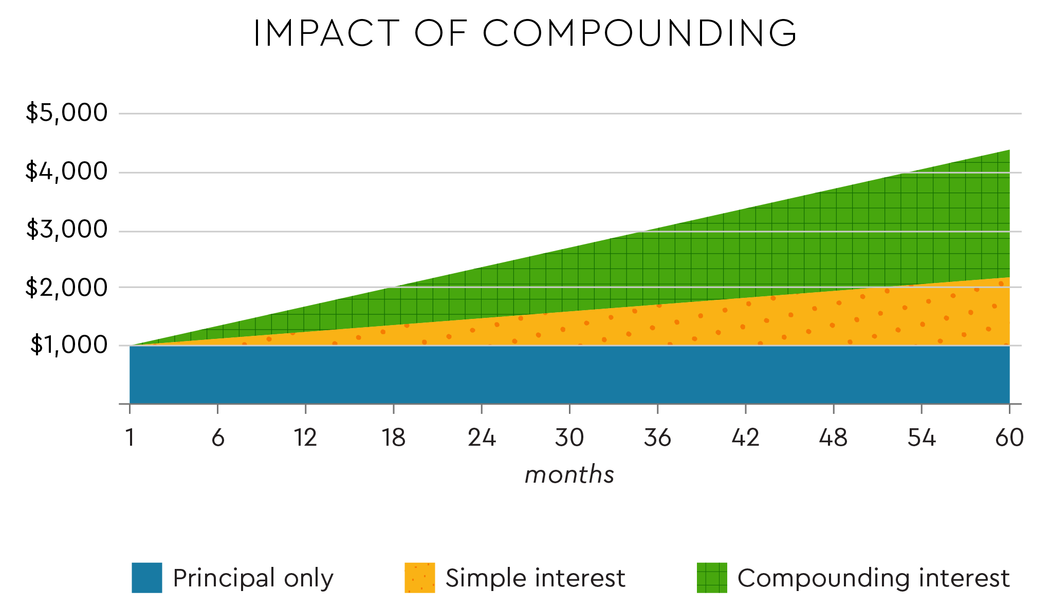 “Time plays an important role in compound interest” says Vanden Heuval. “So, starting your investments early, even with smaller amounts, gives your money more time to grow and for the interest to compound.