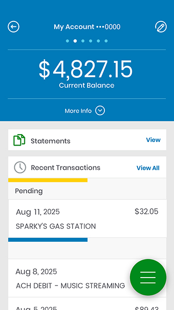 • Debit card purchase: buying something with your card (groceries, gas).