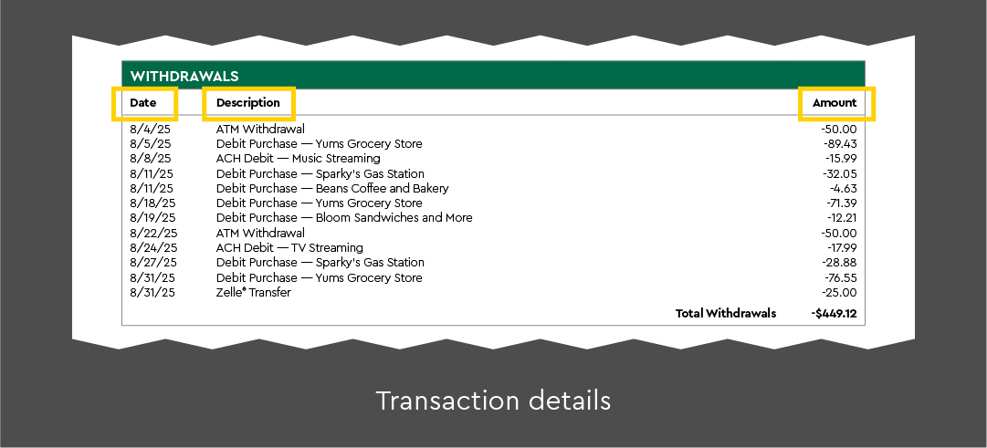 • Beginning and ending balance: how much money you started and ended the statement period with.