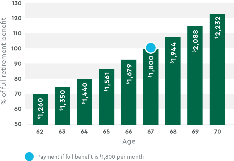 While you can start receiving your Social Security retirement benefits at 62, the amount you will receive grows each year you wait until you reach what the federal government calls “full retirement age. link opens in a new window” For those born after 1960, “full retirement age” is 67.